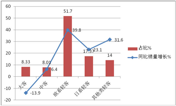 1、欧系轻客销量同比增幅39.8%,是客车各细分市场中增幅最大的细分车型,领涨客车大盘;