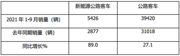 1、根据慧眼看车数据,2021年前三季度新能源公路客车同比增长近9成,远远跑赢公路客车市场大盘27.1%的增幅: