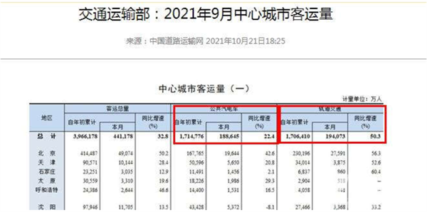 根据交通部今年10月21日刚公布的最新数据,今年前9月公共汽电车(城市公交客车)客运量同比增速22.4%,而城市轨道交通同比增速为50.3%,也就是说城市轨道交通客运量同比增速几乎是公交客车的2.25倍。换言之,6米以上大中巴公交根本竞争不过城市轨道交通,城市轨道交通抢走了城市大中型公交大中巴的客源。