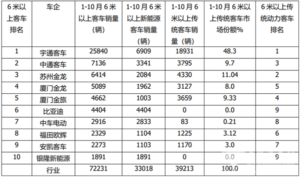 “两通三龙”成绝对主力!2021年前10月6米以上传统动力客车市场特点简析