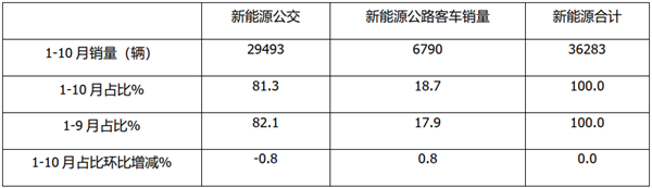 总之,今年10月新能源公交占比是第三次下滑到8成以下的月份,“银十”不太给力。
