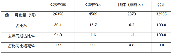 特征六、按目标用途划分,前11月公路客车占比同比上升最大,公交客车占比同比下降最多