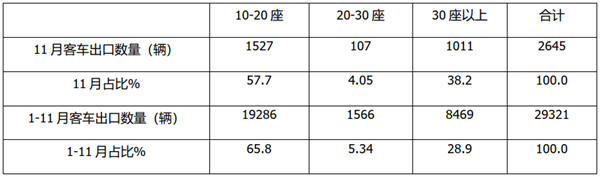2021年11月及1-11月客车出口市场分析