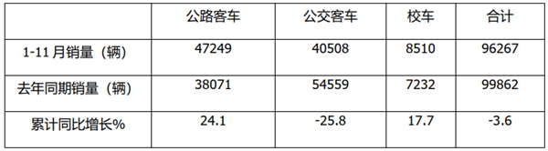 2021年11月及1-11月公路、公交、校车市场简析