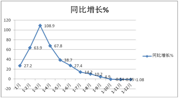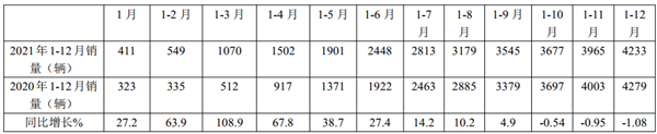 2021年1-12月各月高档客车累计销量及同比统计: