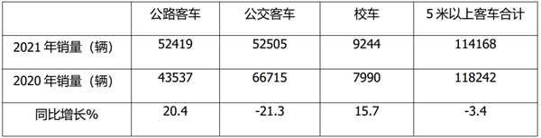 按目标用途市场划分,客车中的三大细分市场---公路、公交、校车,在刚刚过去的2021年都有着各自不同的表现。