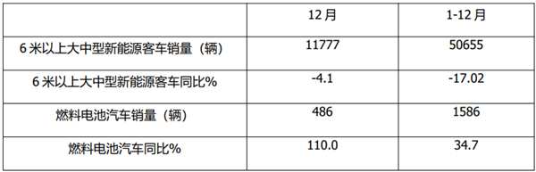 特点四、12月及全年燃料电池汽车增速均跑赢新能源客车大盘
