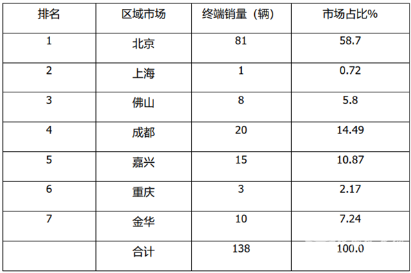 ---成都销售20辆,占比14.49%,居于全国第二;