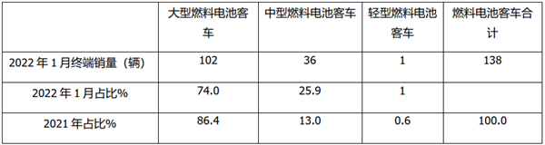 2022年1月燃料电池客车市场特点简析