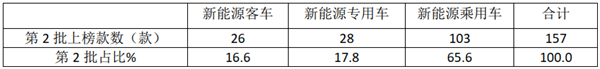一、在2022年第2批新能源汽车推荐目录入选车型中,新能源客车上榜26款,占比16.56%,在本批次推荐目录中占比最小
