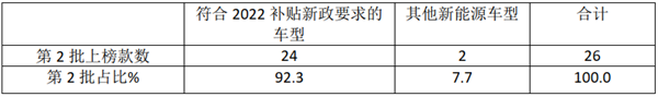 二、上榜车型中,符合2022年补贴新政的车型为24款,占比92.3%,占据主体地位