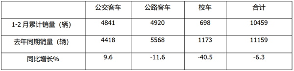上表可见,在2022年1-2月公路、公交、校车三大细分市场中,销量最大的是公路客车,累计销量为4920辆,同比下降11.6%,是同比增幅第二大且是的细分市场;销量第二大的是公交客车,累计销量为4841辆,但同比增长9.6%,也是唯一累计同比增长的细分市场;销量最小的是校车,同比下降40.5%,近乎“腰斩”,也是同比降幅最大的细分市场。整体看,今年1-2月5米以上公路客车整体累计销量10459辆,同比下降6.3%。