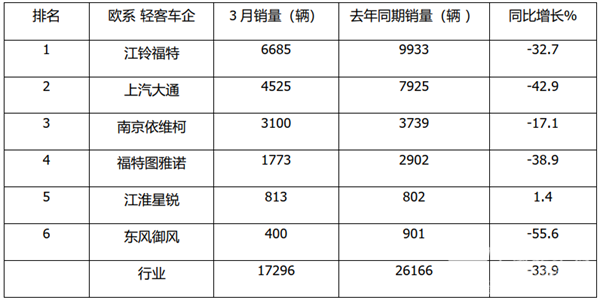 总体看,今年3月份欧系轻客主流车企top6中,销量同比1增5降,可谓“多家忧愁少家欢”。