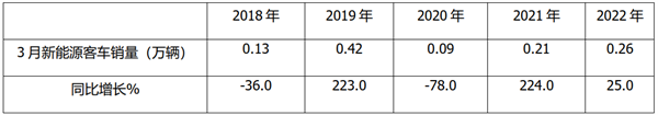 ---2022年3月新能源客车终端上牌销量为0.26万辆,在近5年同期中处于第二(第一是2019年3月为0.42万辆),说明今年3月的新能源客车终端实际销量有回暖迹象。