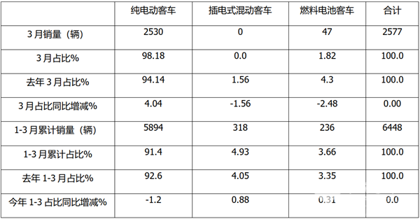 总之,无论是3月还是1-3月大型客车占比均为最高。