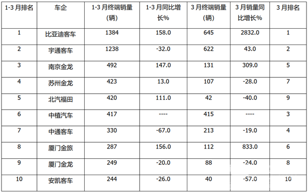 总之,无论是3月,还是1-3月累计销量,比亚迪均第一,宇通客车均为第二。