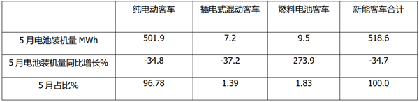2022年5月及1-5月新能源客车动力电池装机量特点简析