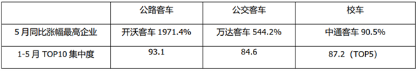 5月公路、公交、校车各细分市场中,谁最“给力”?