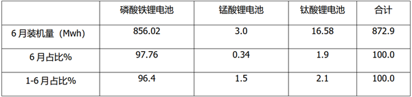 上表可见,在2022年6月及1-6月新能源新能源客车装机量中,磷酸铁锂电池占比分别为97.76%和96.4%,均占据绝对主体地位。