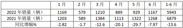 根据终端上牌信息统计,2022年6月考斯特客车销售1167辆,环比5月的929辆增长25.6%,同比去年6月的1268辆下降7.97%;2022年1-6月全国考斯特客车累计销售5943辆,同比2021年上半年的6879辆下降13.6%,其降幅小于今年前6月6米以上大中型客车-23.81%的增幅近10.2个百分点,是抑制今年上半年大中型客车市场下滑的重要力量。