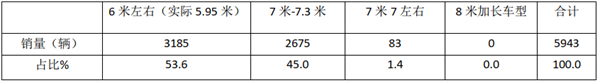 上表可见,在2022年前6月考斯特客车销量结构中,6米长度段考斯特客车销量占比超半壁江山(53.6%),为最大,其次7米-7.3米段占比45.0%,再次是7米7长度段,占比1.4%,最小的是8米加长段,占比0%。这是为何?