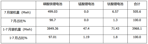 根据中国汽车动力电池产业创新联盟数据,2022年1-7月按技术路线划分,新能源客车动力电池装机量及占比: