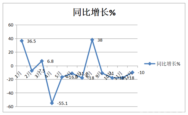 其中1月、3月、8月3个月同比增长,其余9个月同比均下降。