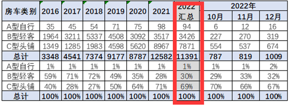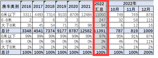 表3,2022年12月、全年各类房车销量及占比(数据来源:截图2)