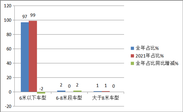 总之, 6米以下车型垄断房车市场。但2022年全年6米以下房车垄断地位同比有减弱的趋势。