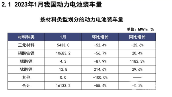 截图1:2023年1月各类材料电池装机量(来源:中国汽车动力电池产业创新联盟)