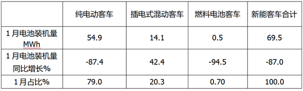 2023年1月新能源客车动力电池装机量插电式混动车型领涨,中客表现最好