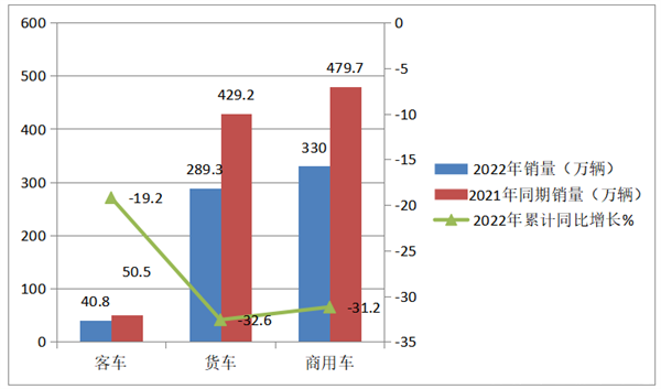 尽管2022年的客车市场表现不“给力”,但其同比19%的降幅在2022年的整个商用车行业中是最小的(见下图,2022年商用车大盘同比下降31.2%,其中货车同比下降32.6%,数据来源:中汽协)。换言之,2022年的客车行业在整个商用车大盘中表现是最好的。