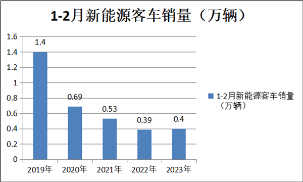 ---2023年1-2月新能源客车终端上牌累计销量为0.4万辆,比2022年同期多出0.01万辆,在近5年同期中处于第四,同比增长2.6%,可以认为2023年前2月新能源客车终端市场在近5年同期处于中等偏下水平。据调研分析具体原因有: