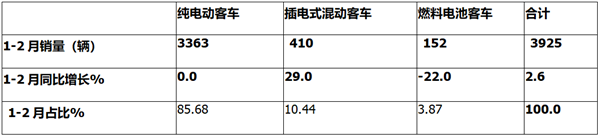 ---插电式混动客车累计销售410辆,同比增长29%,跑赢新能源客车大盘2.6%的增速近26.4个百分点,领涨2023年1-2月新能源客车市场;市场占比10.44%,居第二。