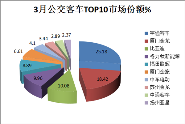 从车企表现来看,今年3月的公交客车市场“排位赛”,发生了较大变化。