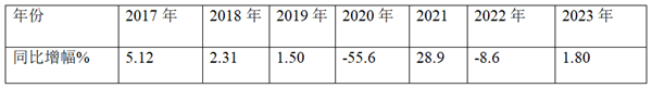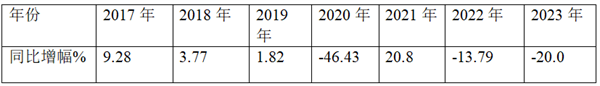 表3 近7年一季度90万-150万客车同比增幅%