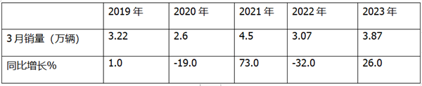 表3,根据中汽协数据,2023年1月—3月各月轻客销量及同比统计: