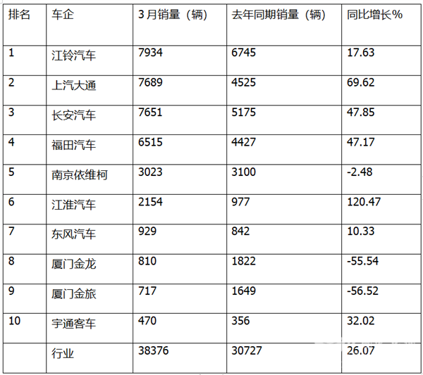 ---江铃汽车销售7934辆,位居第一,居轻客行业的冠军,同比增长17.63%,跑输3月轻客大盘;