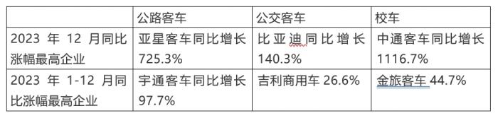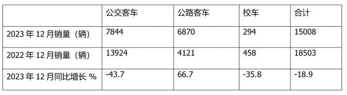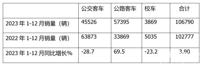 三是农村客车销量大增,为2023年1-12月公路客车市场的大幅度增长提供了支持。
