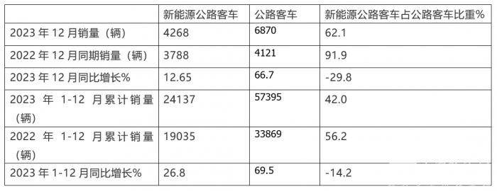 二是2023年同期新能源公路客车销量基数不高,给2023年12月同比增长带来便利。