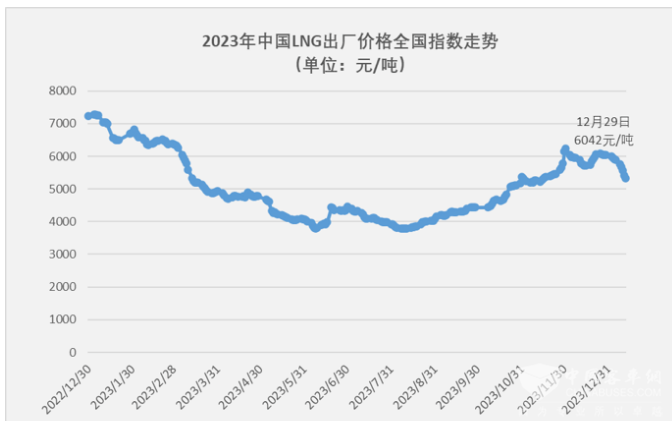 截图1, 2023年各月中国LNG燃气价格走势(数据来源:上海石油天然气交易中心)