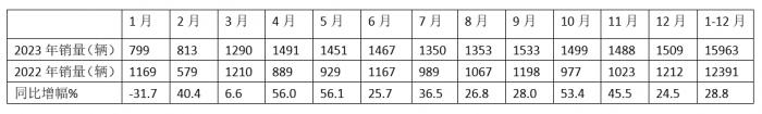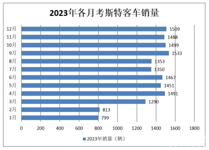 总之,2023年12月考斯特客车销量居2023年各月第二,市场呈现24.5%的增长趋势,2023年全年考斯特累销15963辆,同比增长28.8%,表现较好!