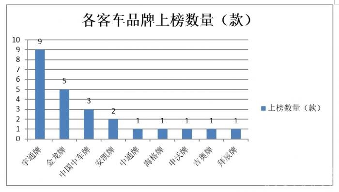 ---宇通牌(宇通客车)累计上榜9款,居榜首;