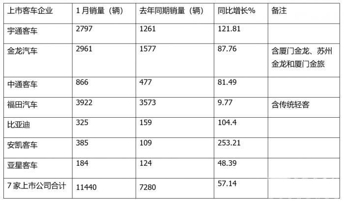 ---2024年1月,7家客车上市公司同比全部增长,均收获“开门红”。