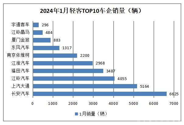 整体看,在2024年1月轻客市场竞争格局中,长安夺冠、大通、江铃分列二、三;TOP10同比全部增长,东风汽车领涨;环比3升7降,江淮领涨;实现同环比双增长的有3个车企,分别是江淮、东风和晶马。
