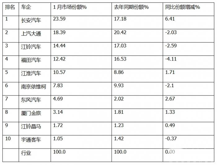 ---江淮汽车市场份额为10.57%;居第五,占比同比增加1.71个百分点。