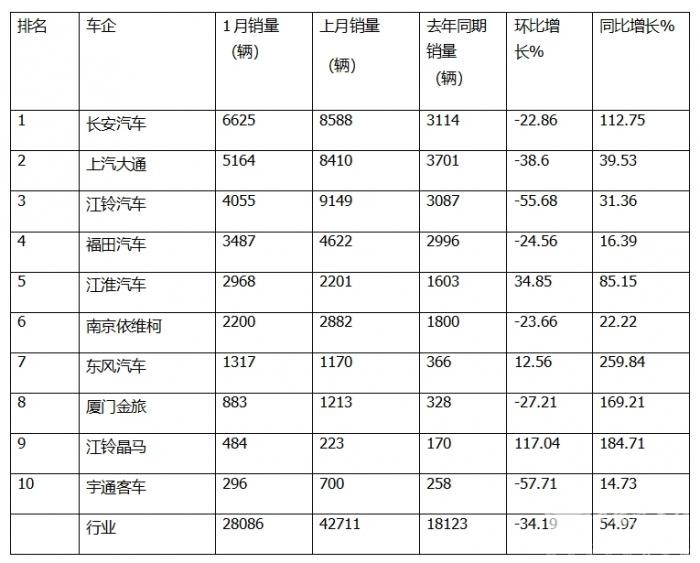 一是年前购车需求提前释放,导致轻客市场销量透支,今年1月的终端需求因此有所减弱。