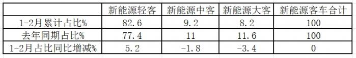 表2,根据终端上牌数据,2024年前2月新能源客车各细分车型占比及占比同比增减: