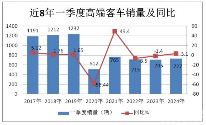 那么,2024年一季度高档客车市场有哪些具体特点?现做简要小结。