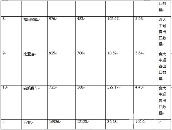 ---其余客车企业出口数量均在350辆以下,市场占比均小于等于7%(含)。